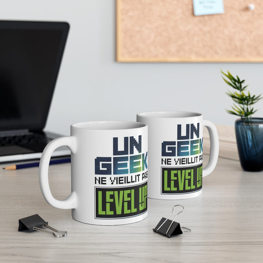 Mug "Un Geek ne Vieillit Pas, il Level Up" - idée Cadeau pour les Gamers et Geeks