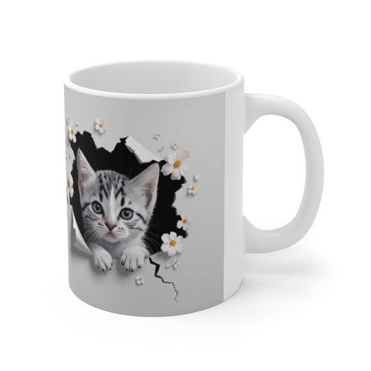 Mug "Tasse Animal Chaton et Fleurs Blanches" - Douceur et Élégance Féline pour enfants et adultes