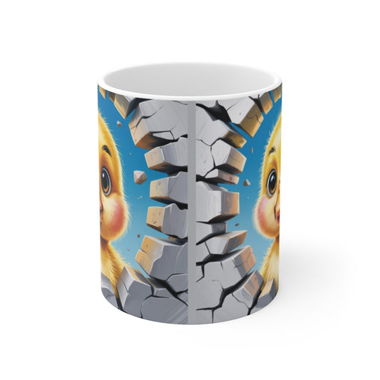 Mug Bébé Canard 3D – Tasse Caneton Mignon Cartoon Jaune Mur Cassé Cadeau Drôle Original 325ml