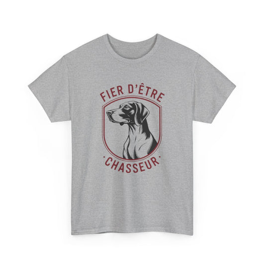 Tee-Shirt Chasseur Homme – Design Chien de Chasse – T-shirt Blanc ou Gris – Fier d’Être Chasseur