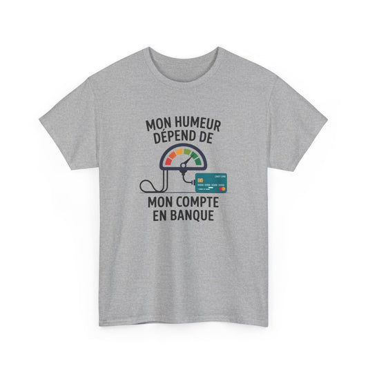 Tee-Shirt Drôle Compte Bancaire – Mon Humeur Dépend de Mon Solde Visuel Jauge Argent Carte Bleue – Humour Financier