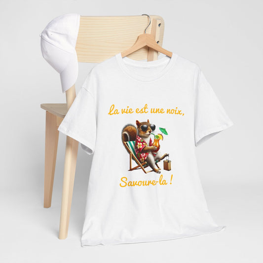 Tee-Shirt La Vie est une Noix, Savoure-la ! Écureuil animal animaux idée cadeau humour drôle pour homme et femme