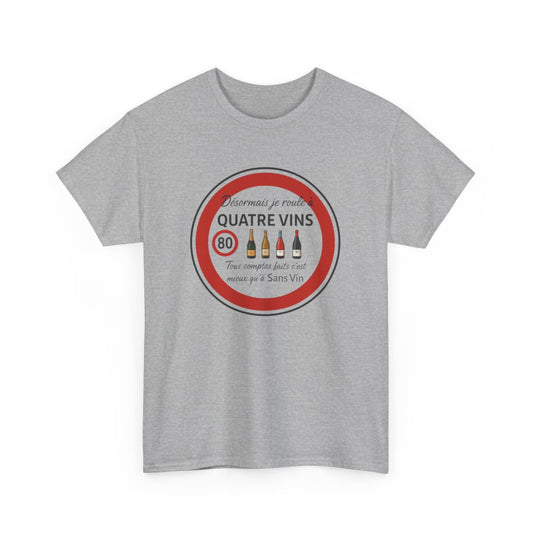 Tee-Shirt Humour Vin – Je Roule à Quatre Vins – T-shirt Blanc ou Gris – Cadeau Œnologue, Anniversaire ou Retraite