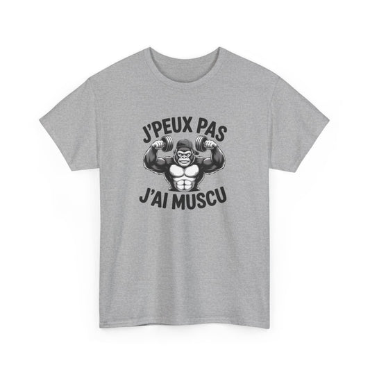 Tee-Shirt J’Peux Pas J’Ai Muscu – T-shirt Sport Gorilla Bodybuilding – Coton Adulte Blanc ou Gris – Humour Fitness et Gym