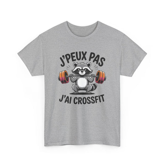 Tee-Shirt J’Peux Pas J’Ai Crossfit – T-shirt Blanc ou Gris Sport – Design Raton Laveur Musclé – Humour Fitness