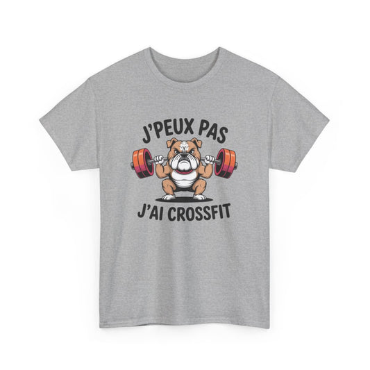 Tee-Shirt J’Peux Pas J’Ai Crossfit – T-shirt Blanc ou Gris Sport Bulldog Muscu – Humour Coton Adulte Fitness