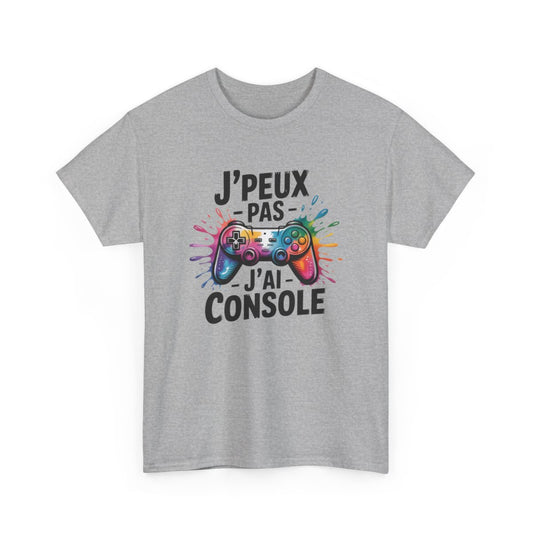 Tee-Shirt J’Peux Pas J’Ai Console – T-shirt Blanc ou Gris Coton Gamer – Manette Multicolore – Humour Geek Jeu Vidéo