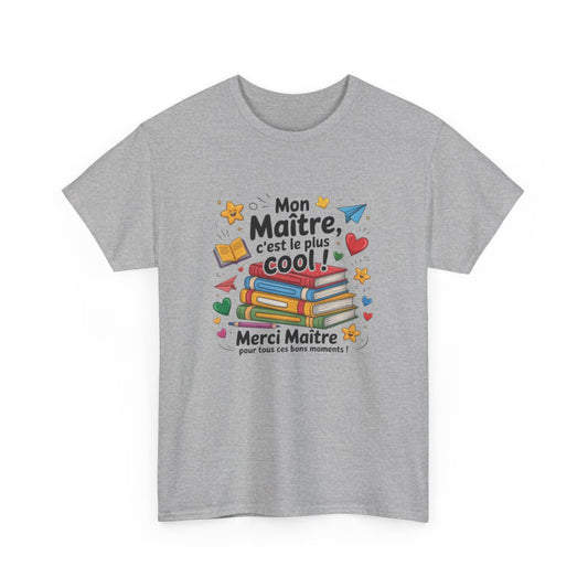 Tee-Shirt Merci Maître Homme – Cadeau Fin d’Année École – T-shirt Col Rond Blanc ou Gris