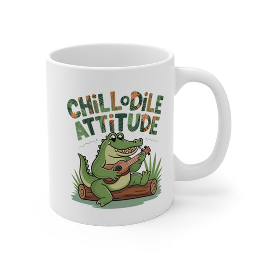 Mug Crocodile Chillodile Attitude Tasse Détente Croco Relax Ukulélé Humour Animal Jungle Musique Vacances Cool Original Fun