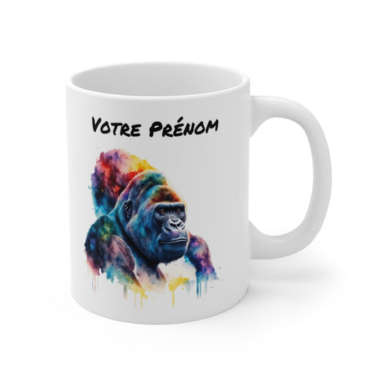 Mug Personnalisable Personnalisé Prénom Gorille Aquarelle - Tasse en Céramique 325ml - Design Coloré et Artistique