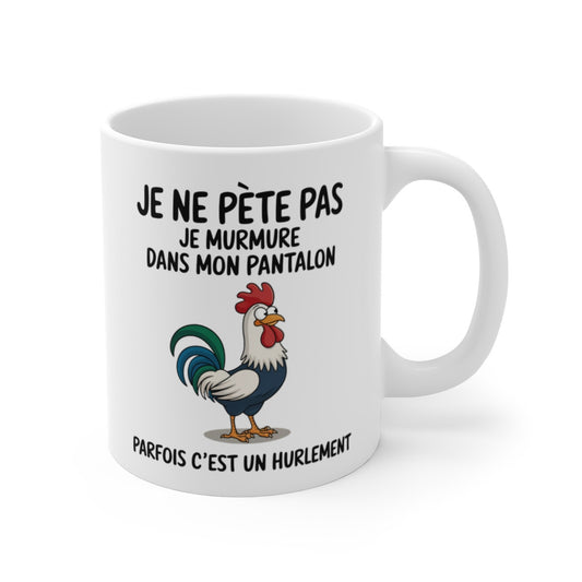 Mug Tasse Humour "Je ne pète pas, je murmure" - Tasse Drôle avec Coq - Idée Cadeau Originale et Rigolote