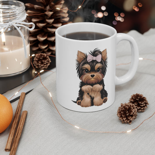 Mug Tasse Chien Animal Yorkshire à Nœud Rose – Idée Cadeau Originale pour Enfants et Adultes