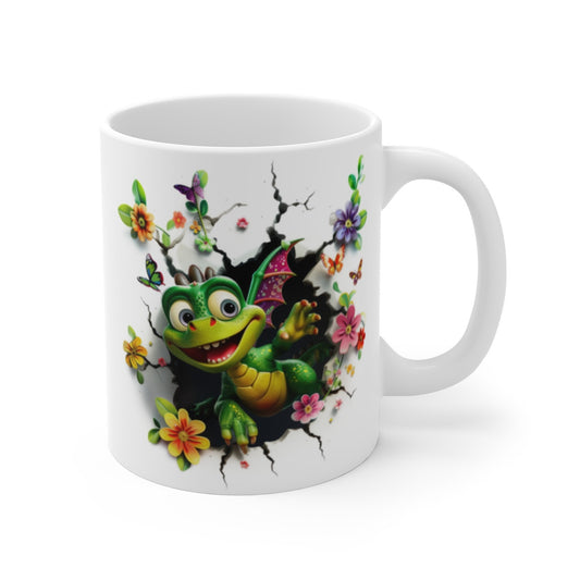 Mug Tasse Bébé Dragon Vert Ailé – Tasse Fantasy avec Fleurs et Papillons – Cadeau Geek Original