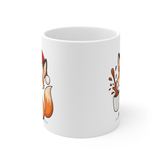 Mug Renard Noël 325ml – Tasse Céramique Mignonne avec Bonnet Rouge – Cadeau Fêtes Original