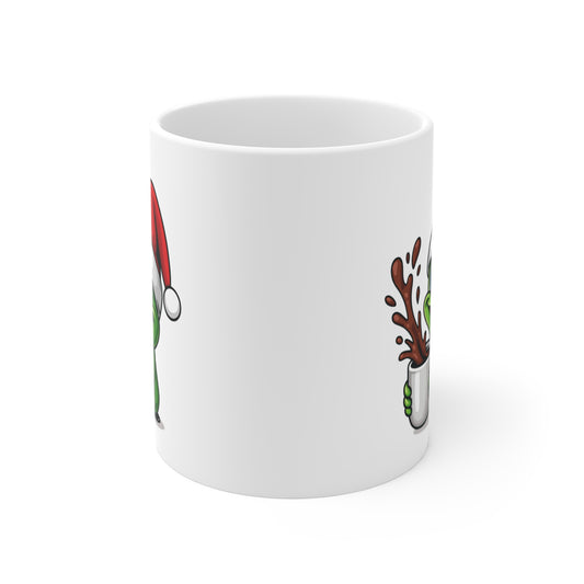 Mug Grenouille Noël 325ml – Tasse Céramique Mignonne avec Bonnet Rouge – Cadeau Fêtes Original
