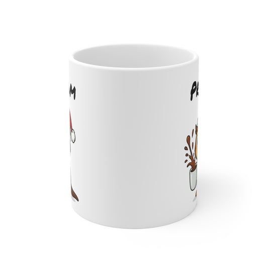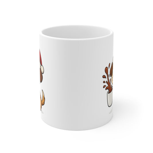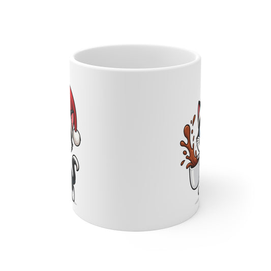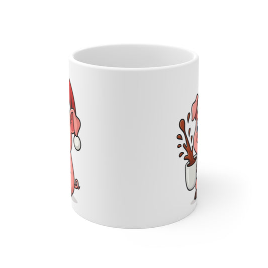 Mug Chiot Noël 325ml – Tasse Céramique Mignonne avec Bonnet Rouge – Cadeau Fêtes Original