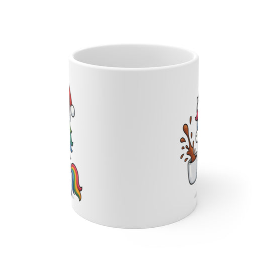 Mug Licorne Noël 325ml – Tasse Céramique Mignonne Arc-en-Ciel avec Bonnet Rouge – Cadeau Fêtes