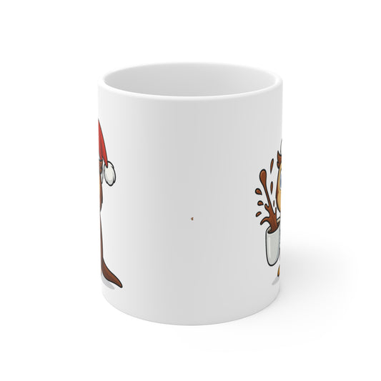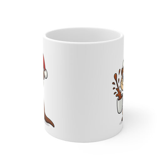 Mug Loutre Noël 325ml – Tasse Céramique Mignonne avec Bonnet Rouge – Cadeau Fêtes Original
