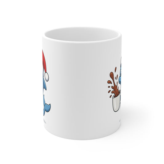 Mug Dauphin Noël 325ml – Tasse Céramique Mignonne avec Bonnet Rouge – Cadeau Fêtes Original