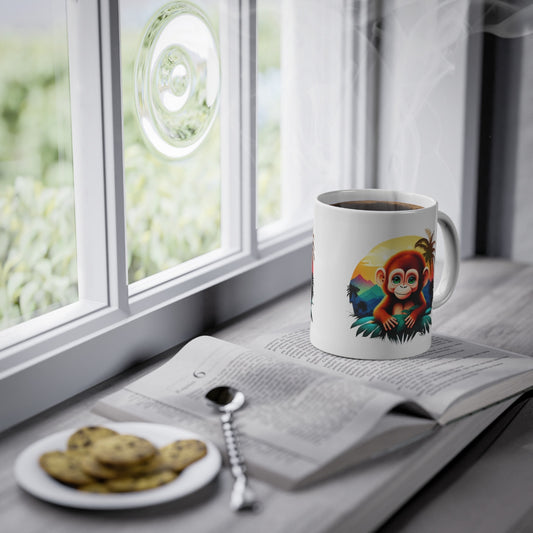 Mug tasse à café bébé singe assis coloré idée cadeau anniversaire travail bureau pour enfant et adulte
