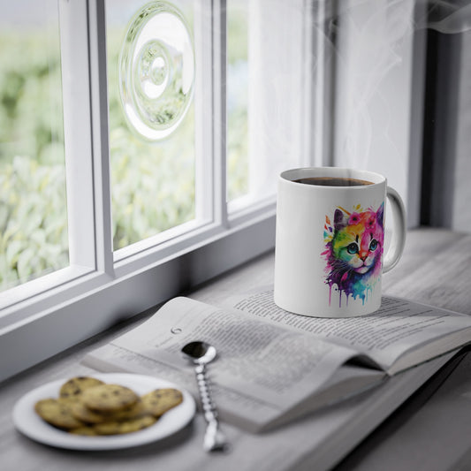 Mug chaton coloré papillon fleur idée cadeau bureau travail anniversaire pour adulte et enfant