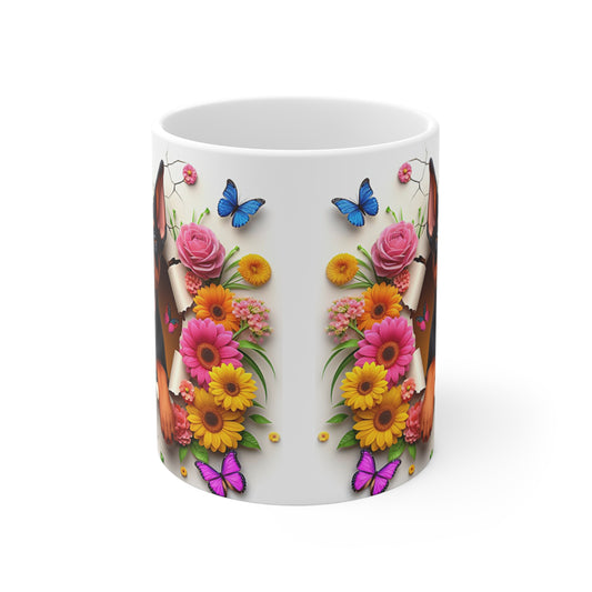 Tasse Céramique Doberman et Fleurs – Mug Chien Mignon Papillons – Cadeau Animaux Bohème 325ml