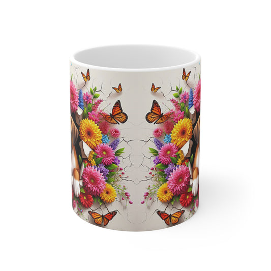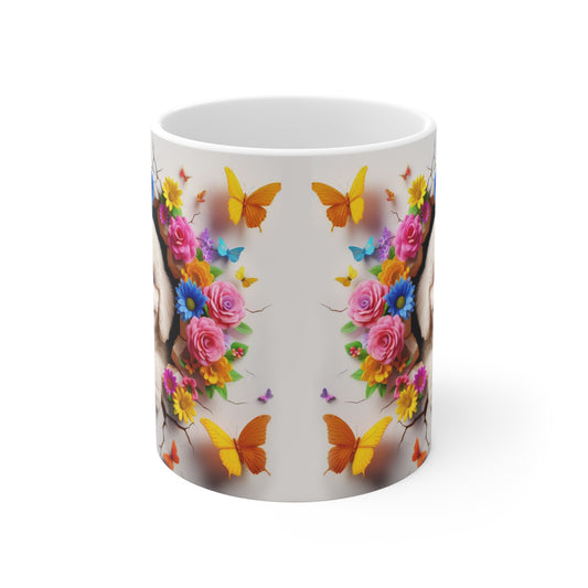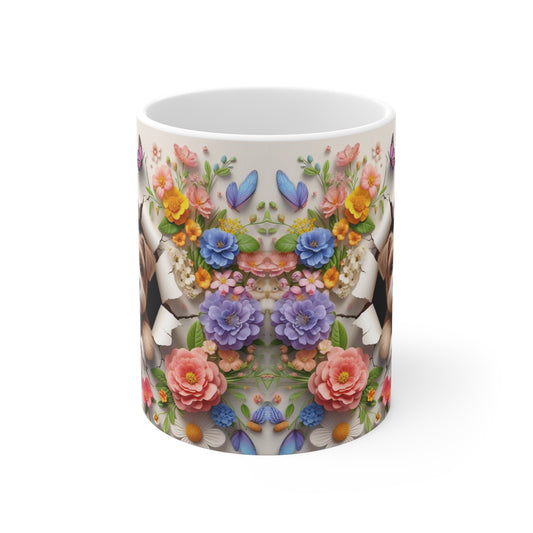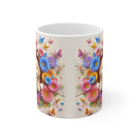 Tasse Chien Mignon & Fleurs – Mug Papillons Coloré Printemps – Cadeau Animaux 325ml
