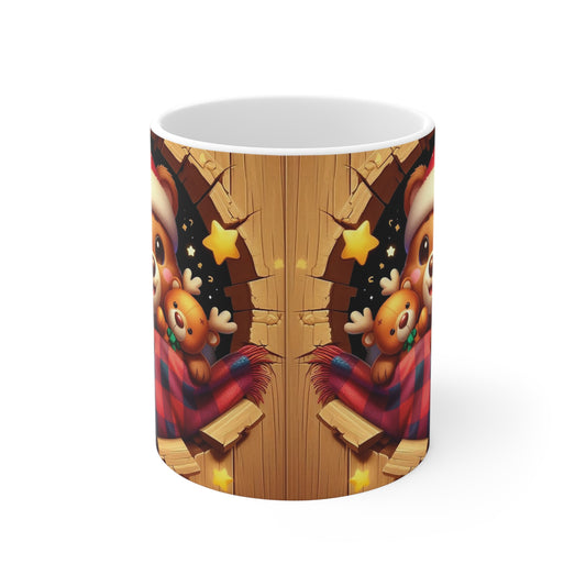 Tasse Ourson Noël – Mug Hiver Cocooning avec Doudou Ours – Céramique 325ml – Cadeau Festif et Chaleureux