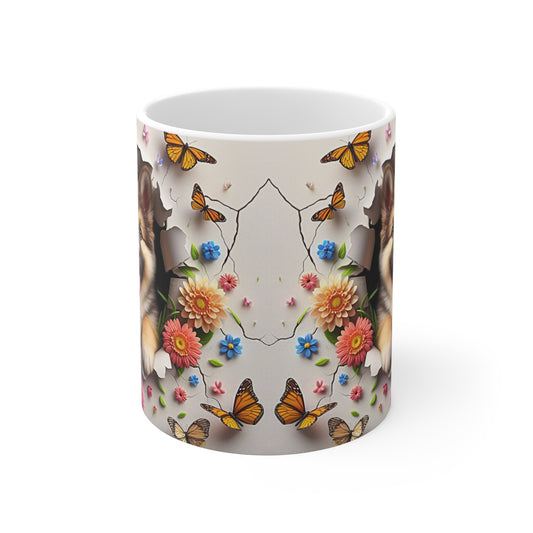 Tasse Céramique Chiot Berger et Fleurs – Mug Chien Mignon Papillons – Cadeau Animaux Bohème 325ml