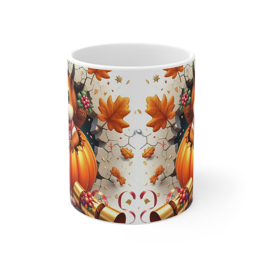 Tasse Écureuil Automne – Mug Citrouille & Feuilles Orange – Céramique 325ml – Cadeau Halloween et Hiver