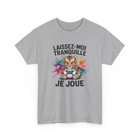 T-shirt Tigre Gamer Unisexe Tee-shirt Motif Coloré avec Manette Laissez-moi Tranquille Je Joue Blanc & Gris Coton S-3XL