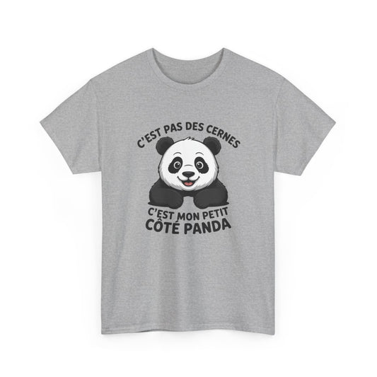 T-shirt Panda Humour Unisexe C’est Pas Des Cernes C’est Mon Petit Côté Panda Blanc & Gris Coton Mignon S-3XL