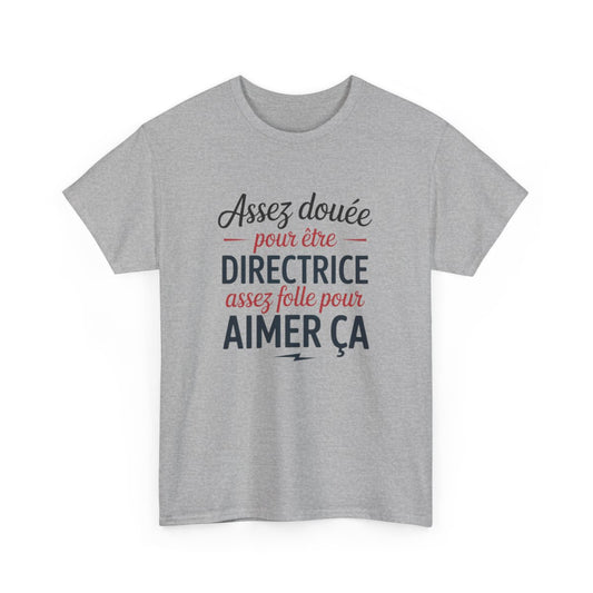 T-shirt Femme Citation Directrice Tee-shirt Blanc & Gris Humour Travail Assez Douée pour Être Directrice S-3XL