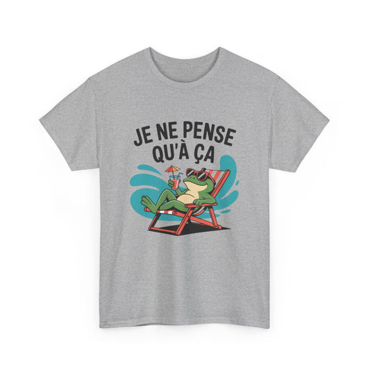 T-shirt Unisexe Humour Été Je Ne Pense Qu’à Ça Grenouille Transat et Cocktail Tee-shirt Blanc & Gris Coton S-3XL
