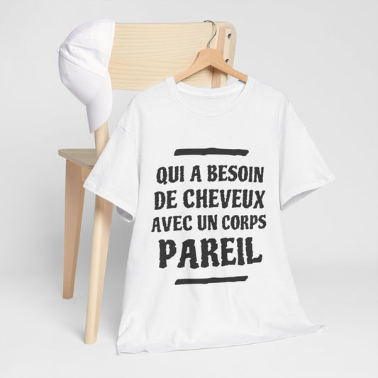 Tee shirt Unisex Qui a besoin de cheveux avec un corps pareil Idée cadeau humour drôle amusant rigolo