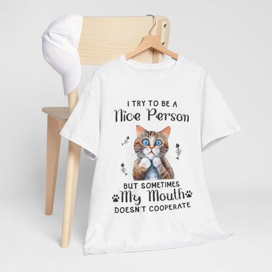 Tee shirt Unisex I try to be a nice person Chat Idée cadeau humour drôle