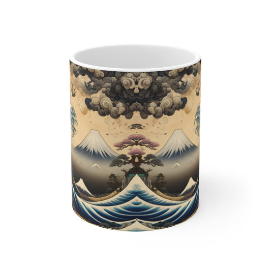 Tasse Vague Japonaise & Fuji – Mug Panoramique Estampe Zen – Cadeau Art Asiatique Céramique 325ml
