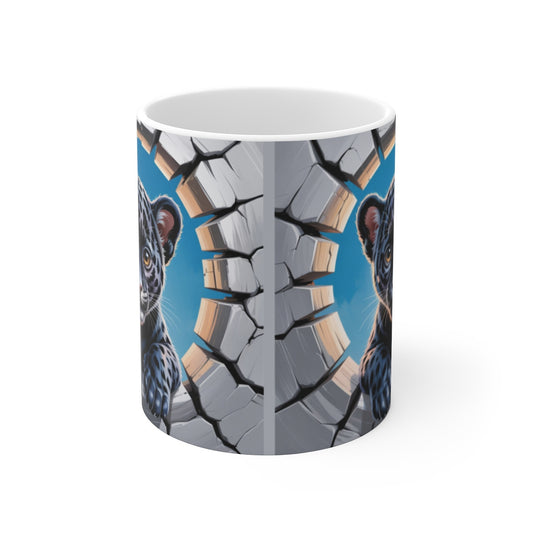 Tasse Panthère Noire Bébé 3D Mug Animal Original Effet Mur Cassé Cadeau Unique pour Enfants et Amoureux des Félins