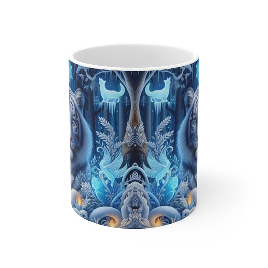 Tasse Tigre Blanc Hiver Féérique – Mug Forêt Enneigée Fantaisie – Cadeau Animal Glacial Majestueux 325ml