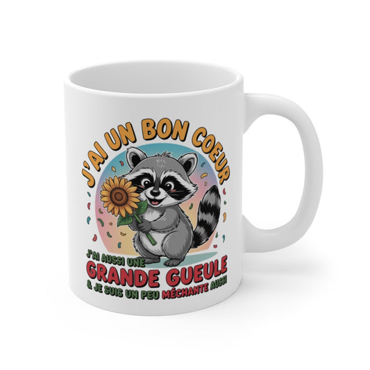 Mug Tasse Drôle Raton Laveur Bon Cœur, Grande Gueule, Un Peu Méchante Idée Cadeau Femme au Caractère Bien Trempé