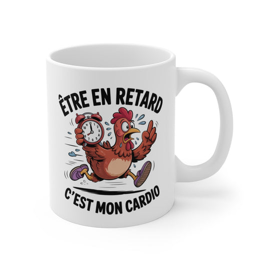 Mug Drôle Poule Pressée Être en retard c’est mon cardio Idée Cadeau Humour Femme Toujours En Retard
