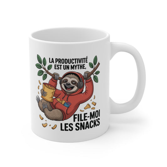 Mug Drôle Paresseux La productivité est un mythe, file-moi les snacks Cadeau Humour Fainéant, Fan de Grignotage