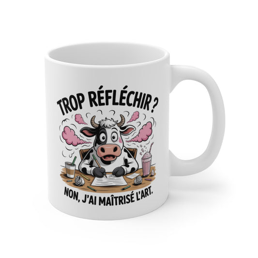 Mug Humour Vache Trop réfléchir ? Non, j’ai maîtrisé l’art Idée Cadeau Drôle Esprit Torturé, Étudiant ou Collègue en Burn-out