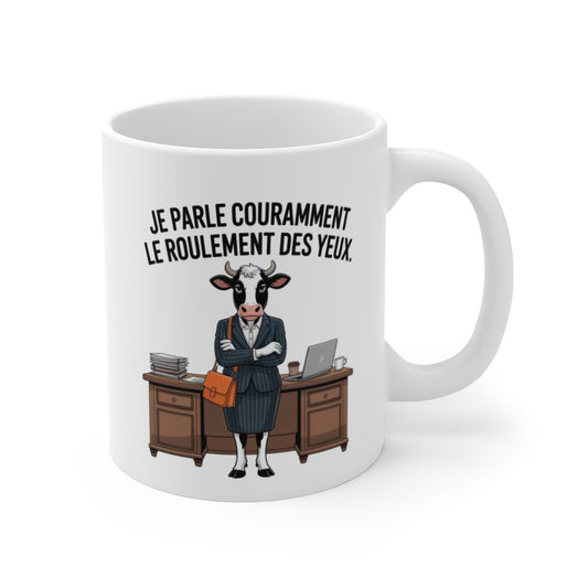 Mug Humour Vache Je parle couramment le roulement des yeux Idée Cadeau Drôle pour Collègues, Bureaux, Chefs Sarcastiques