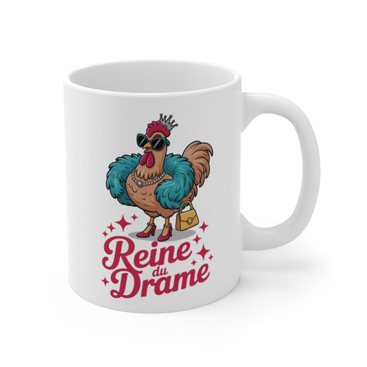 Mug Tasse Poule Drôle – Reine du Drame Humour Femme, Poulette Chic, Cadeau Original, Reine Glamour