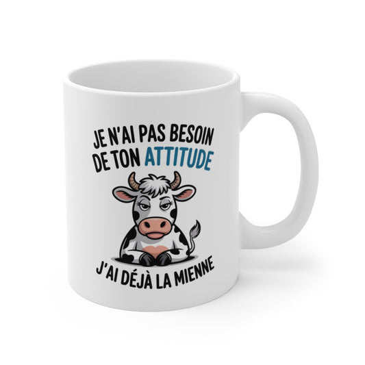 Mug Tasse Vache Drôle Je n’ai pas besoin de ton attitude Humour Blasé, Cadeau Original Femme, Esprit Sassy