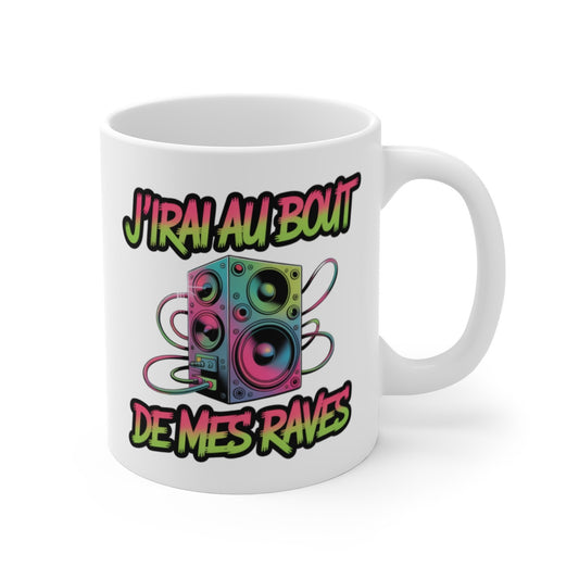 Mug Technophile J’irai au bout de mes raves Idée Cadeau Électro Rave, Musique Techno, Soirée & Festival