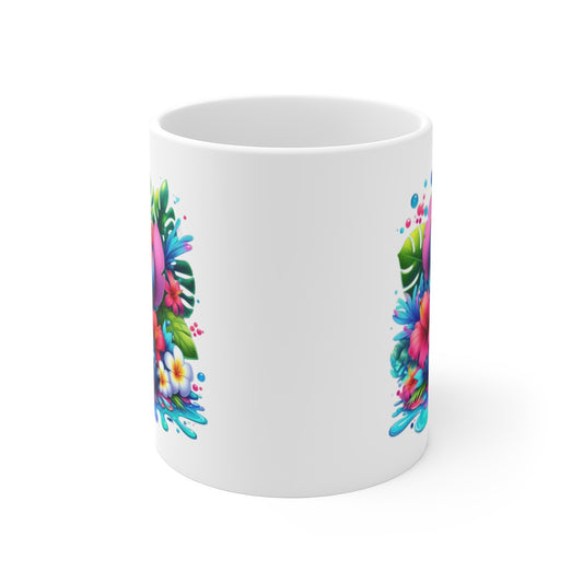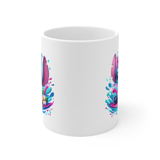 Tasse Créature Stich Bleue – Mug Tropical Exotique avec Fleurs & Splash – Cadeau Original Céramique 325ml