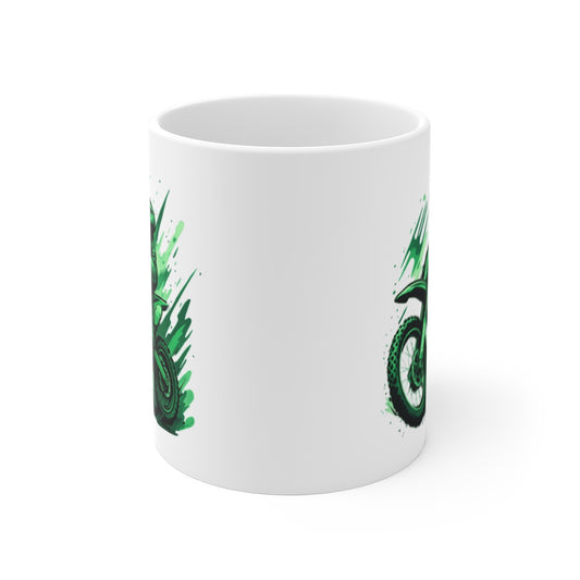 Tasse Motocross Rider Verte Mug Moto Tout-Terrain Cross Cadeau Sport Extrême Céramique 325ml