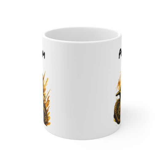 Tasse Motocross Personnalisable Mug Moto Jaune avec Prénom Cadeau Sport Extrême Céramique 325ml